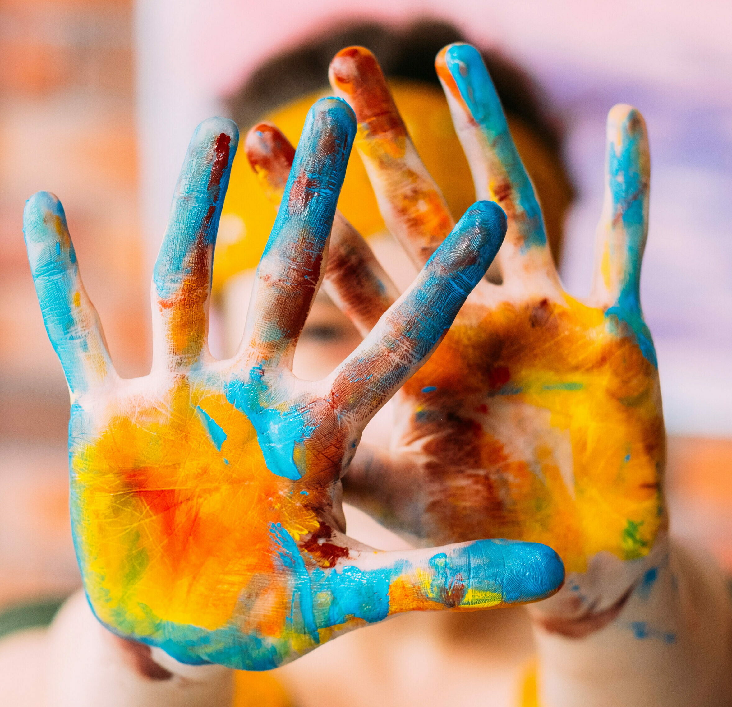 Farben und künstlerische Mittel regen unsere Sinne an. Sehen, riechen, fühlen, hören. Der Fokus wird auf das Ausprobieren neuer Materialien oder Techniken gelegt. Der Prozess, nicht das fertige Kunstwerk, steht dabei im Vordergrund.